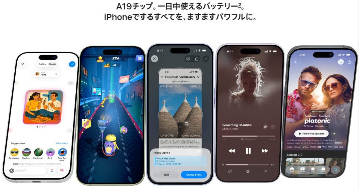 A19チップと最新のiOS 26の最適化により、iPhone 17のバッテリー持続時間は大幅に向上しています。これは、日常使いにおける大きなメリットとなるでしょう。