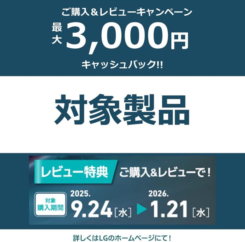 - 無料の保証延長キャンペーン:LG公式オンラインショップや指定の販売店で購入し、製品登録を行うことで、通常2年の保証期間を最大5年(パネル・バックライト含む)まで無料で延長できるキャンペーンが展開されることがあります。※購入時は必ず最新の保証規定を確認してください。