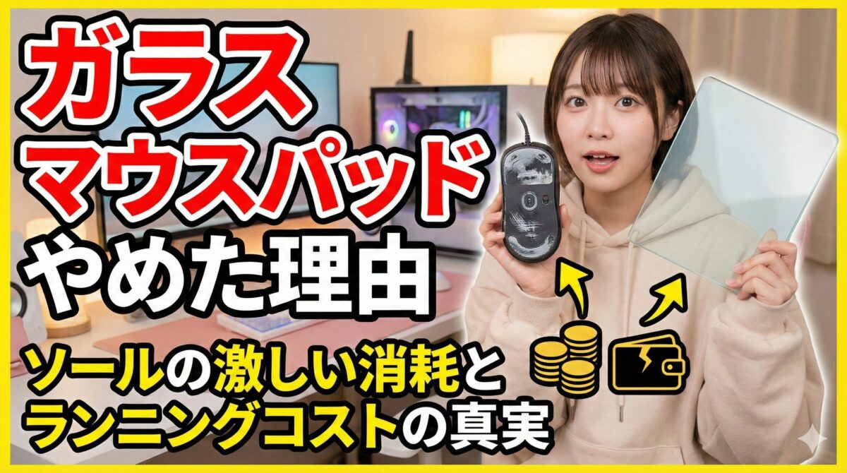 本記事では、「ガラス マウス パッドをやめた理由」として、ソールの消耗とランニングコストを筆頭に、操作難易度、手汗対策の必要性、クリーニングの手間といった具体的なデメリットを徹底的に解説しました。