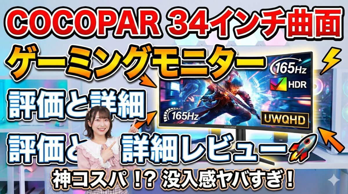 前提知識として、34インチUWQHD、165Hz、1msというスペックは、数年前までは10万円前後の製品でしか手に入らないものでした。しかし、COCOPAR HG-4K34Cは、この高性能をセール時に3万円台という驚異的な価格で提供し、市場の常識を覆しました。😲