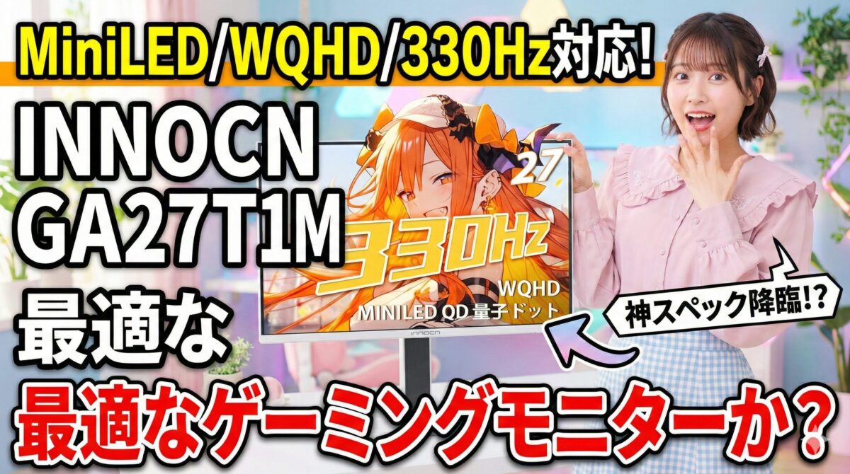 この難題に、一つの強力な解答を提示したのが、INNOCNから登場した「GA27T1M」です。Mini-LEDバックライト技術、量子ドット(QD Fast IPS)パネル、そして最大330Hzという現行トップクラスのスピードを組み合わせたこのモデルは、まさに夢のようなスペックを実現しています。