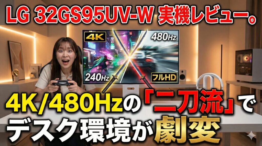 LG 32GS95UV-W実機レビュー。4K/480Hzの「二刀流」でデスク環境が劇変